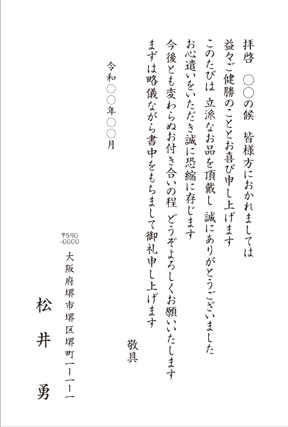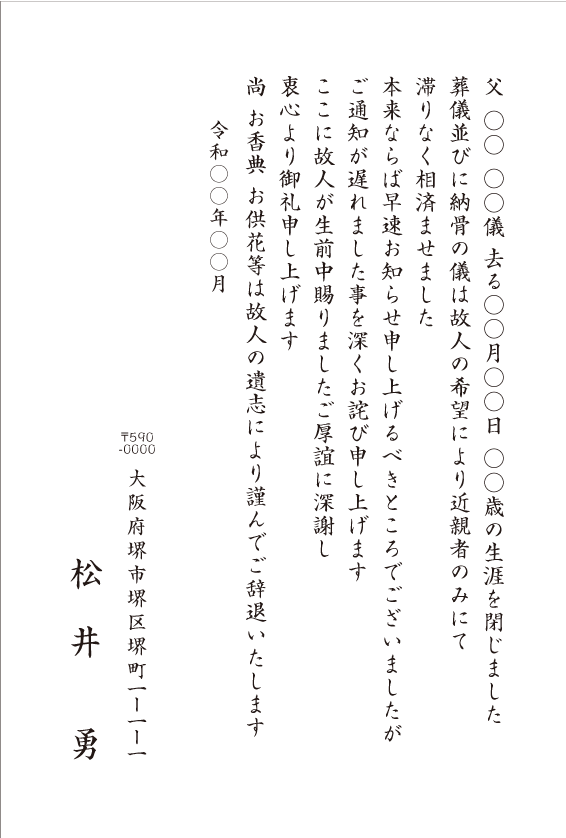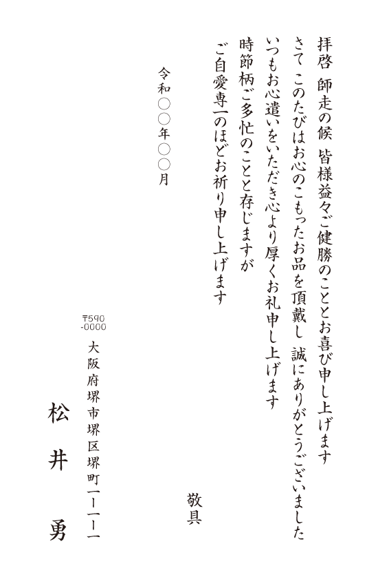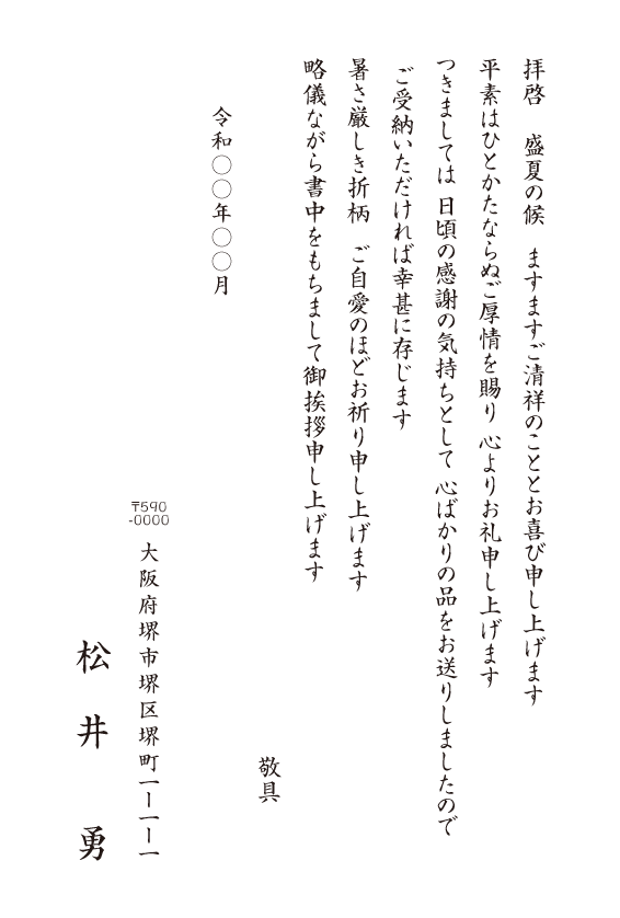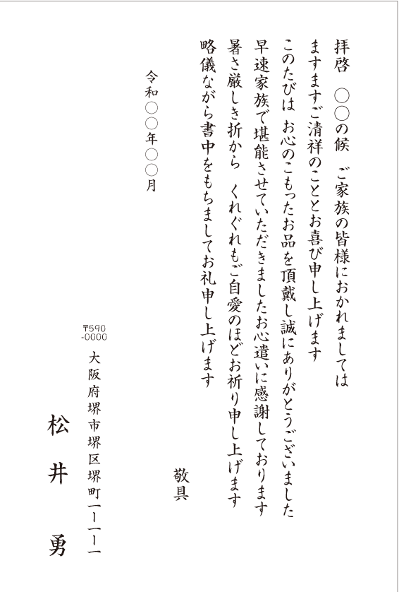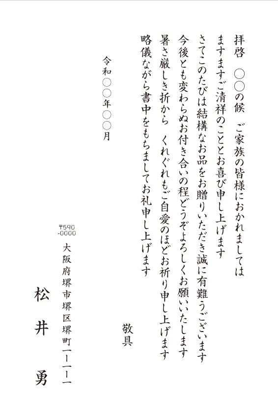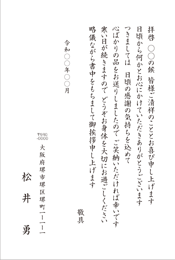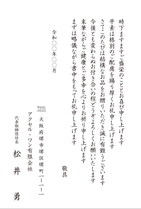 デザイン番号を選んで、ご注文にお進みください。文章は自由にご記入いただけます。