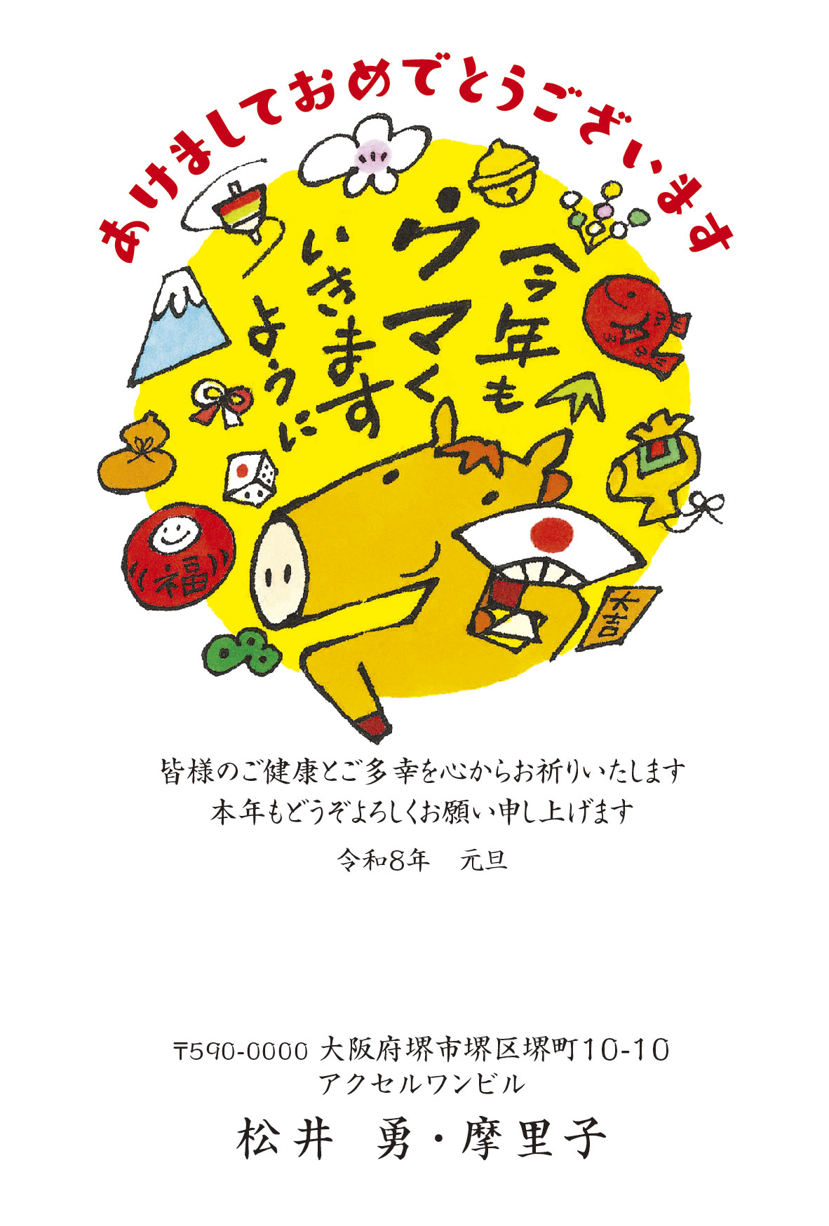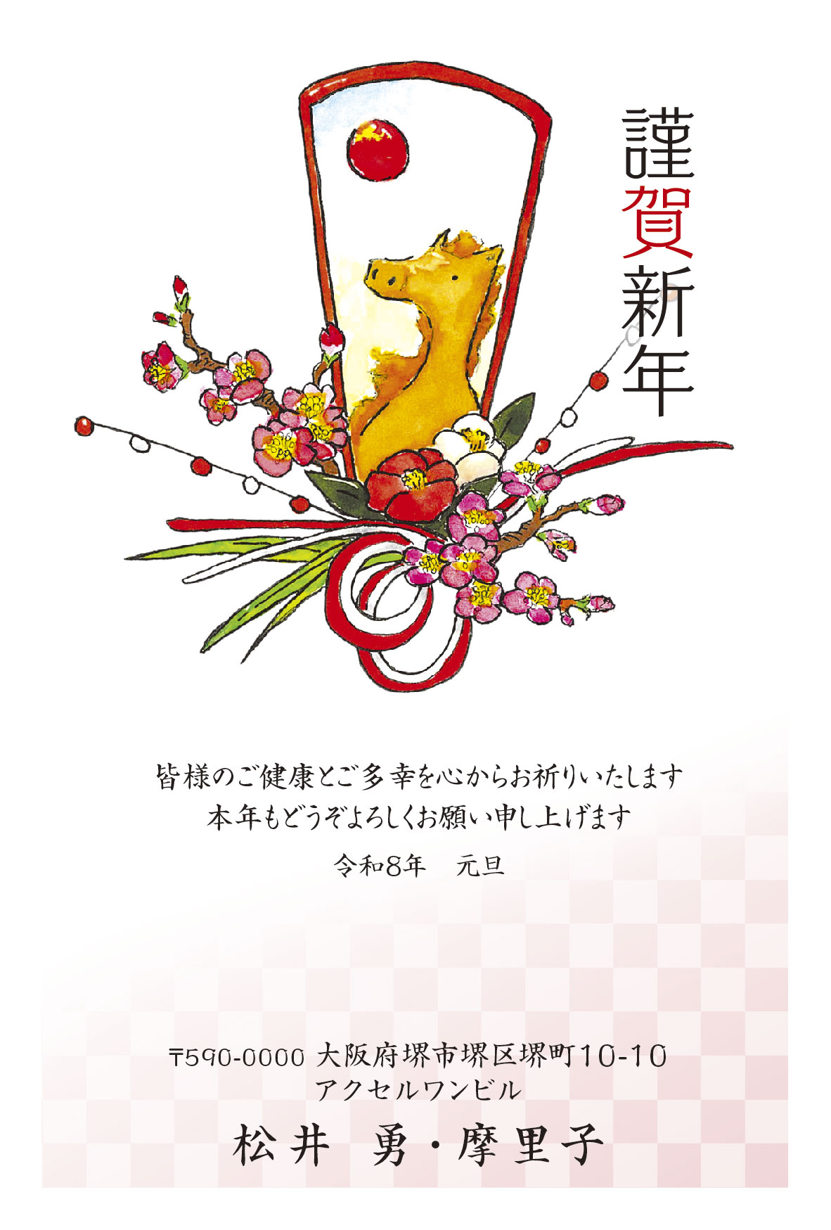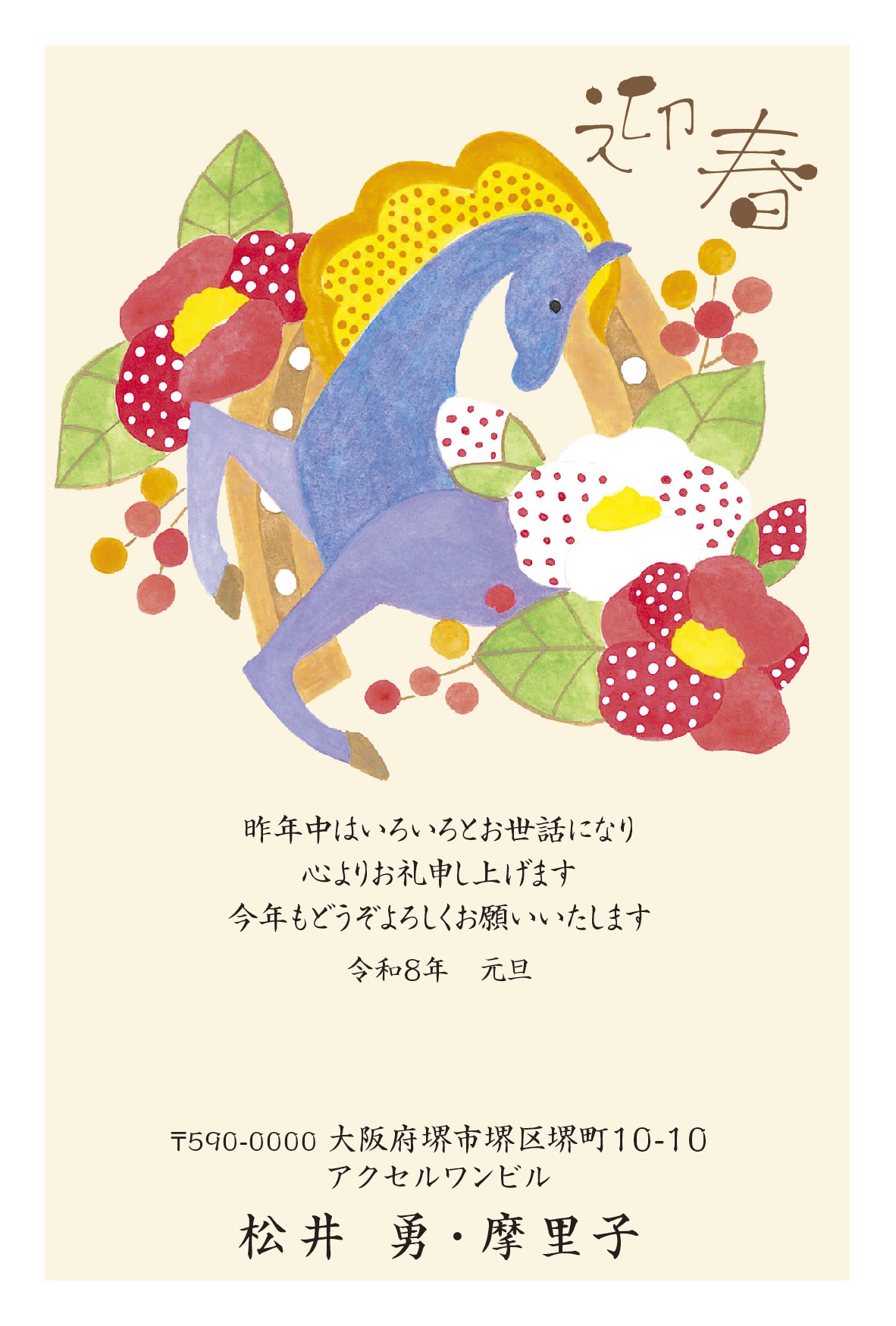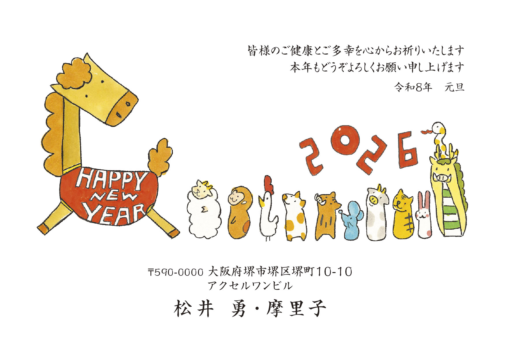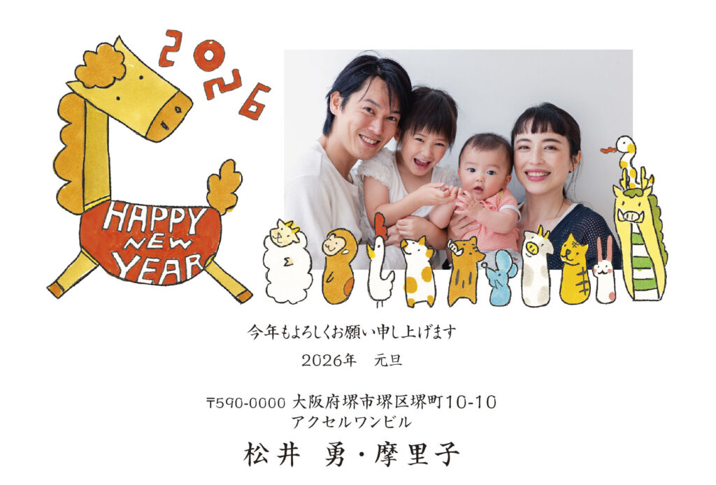 年賀状デザインをお選びください。デザイン番号を選んで、ご注文にお進みください。文章は自由にご記入いただけます。