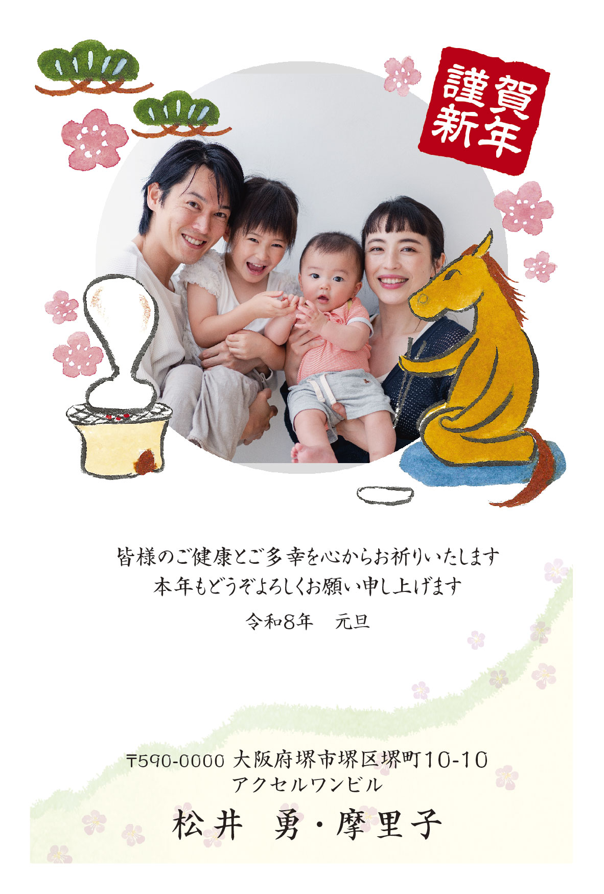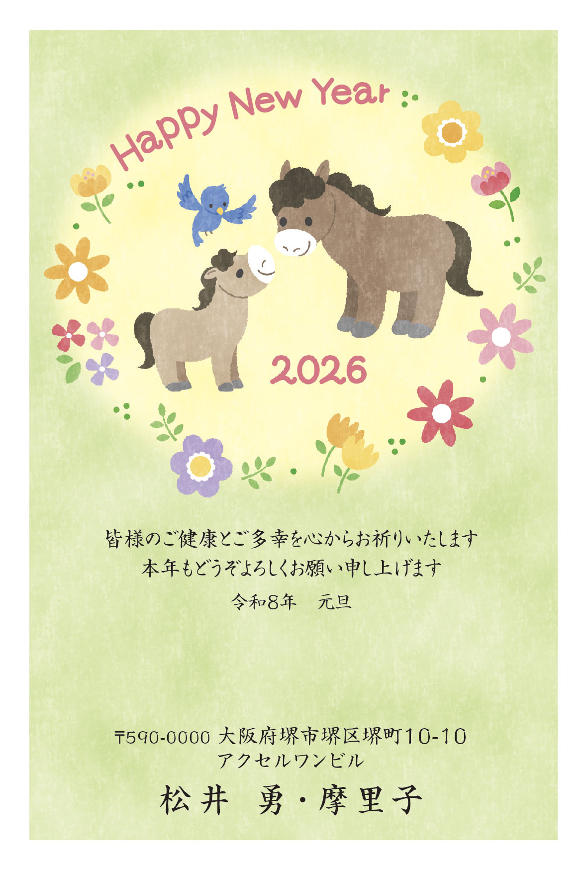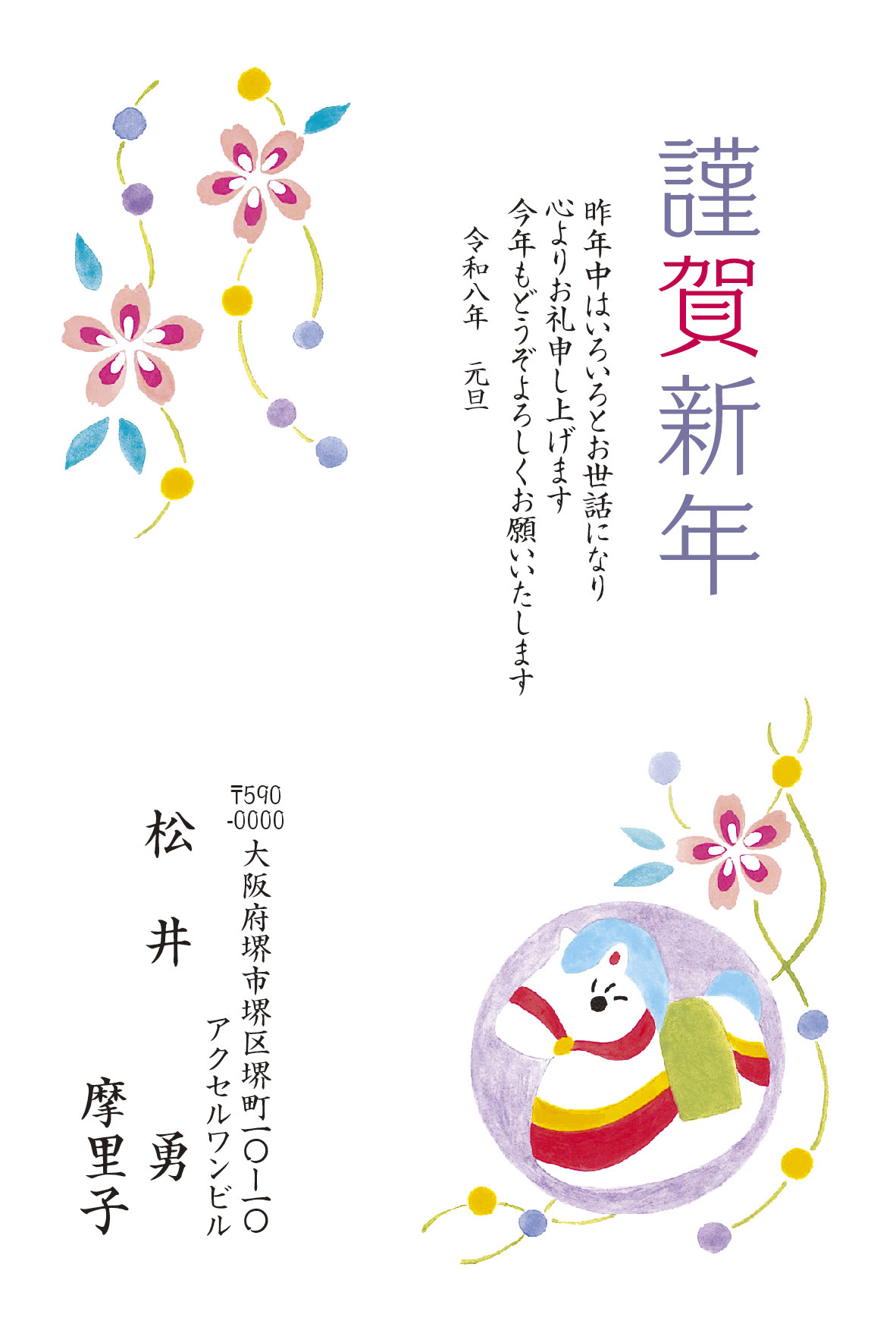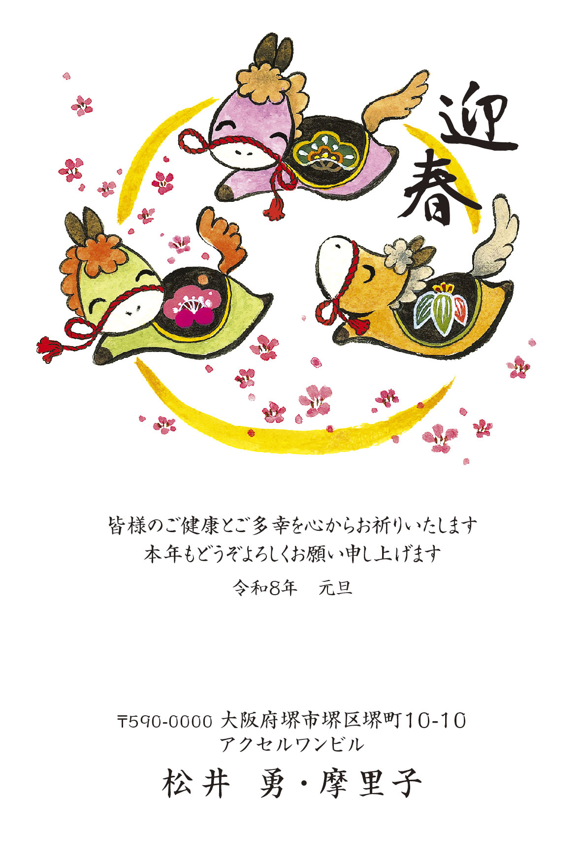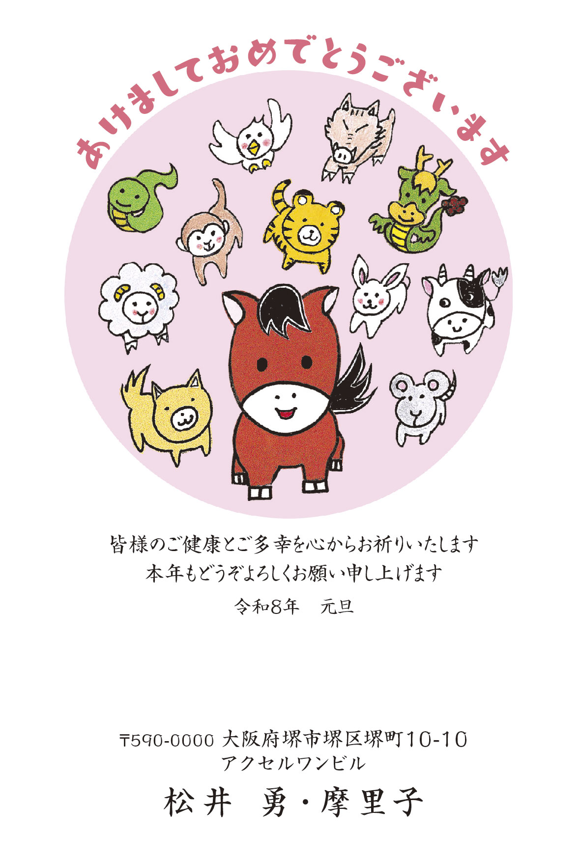 年賀状デザインをお選びください。デザイン番号を選んで、ご注文にお進みください。文章は自由にご記入いただけます。