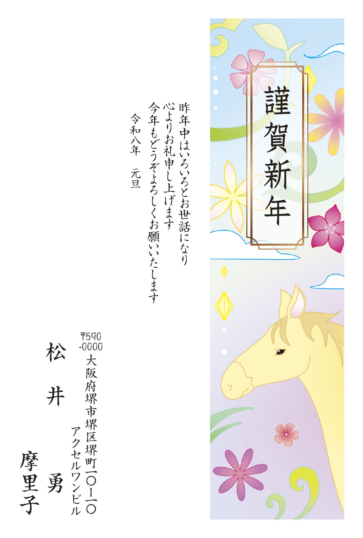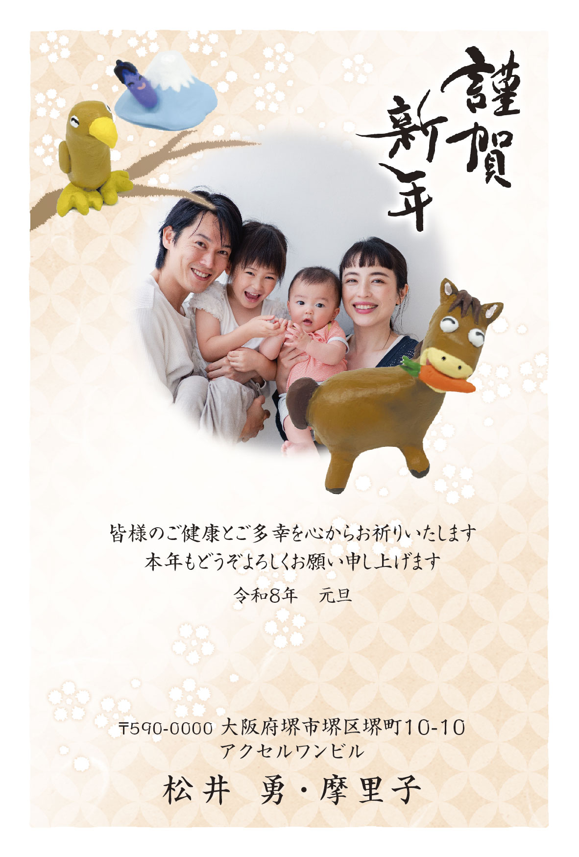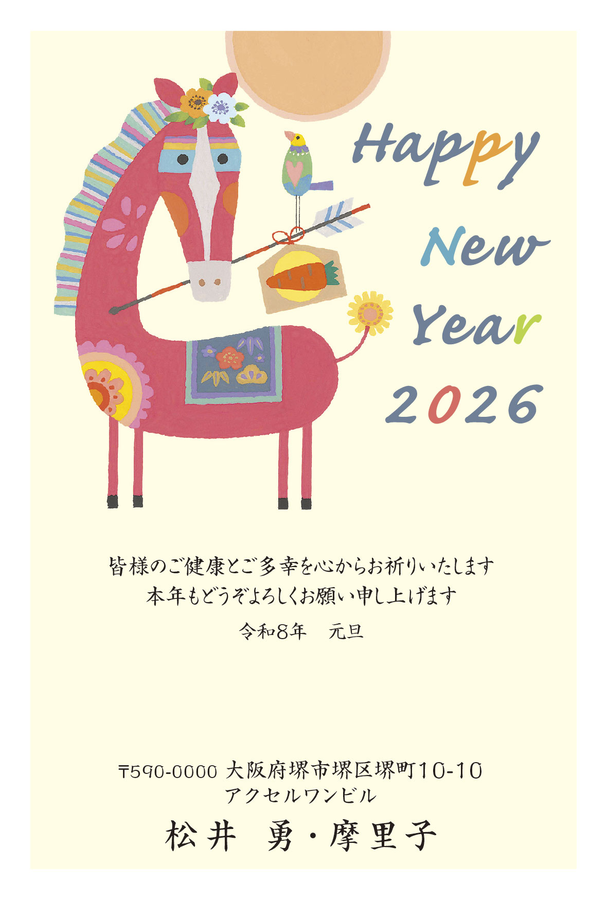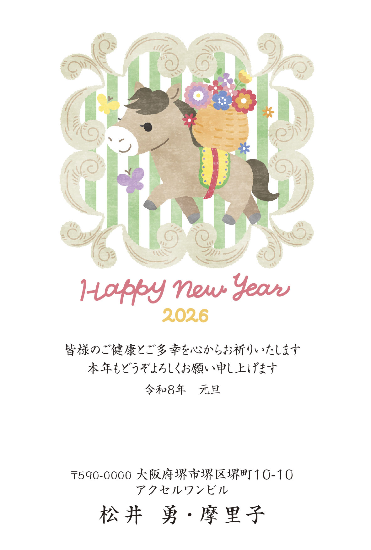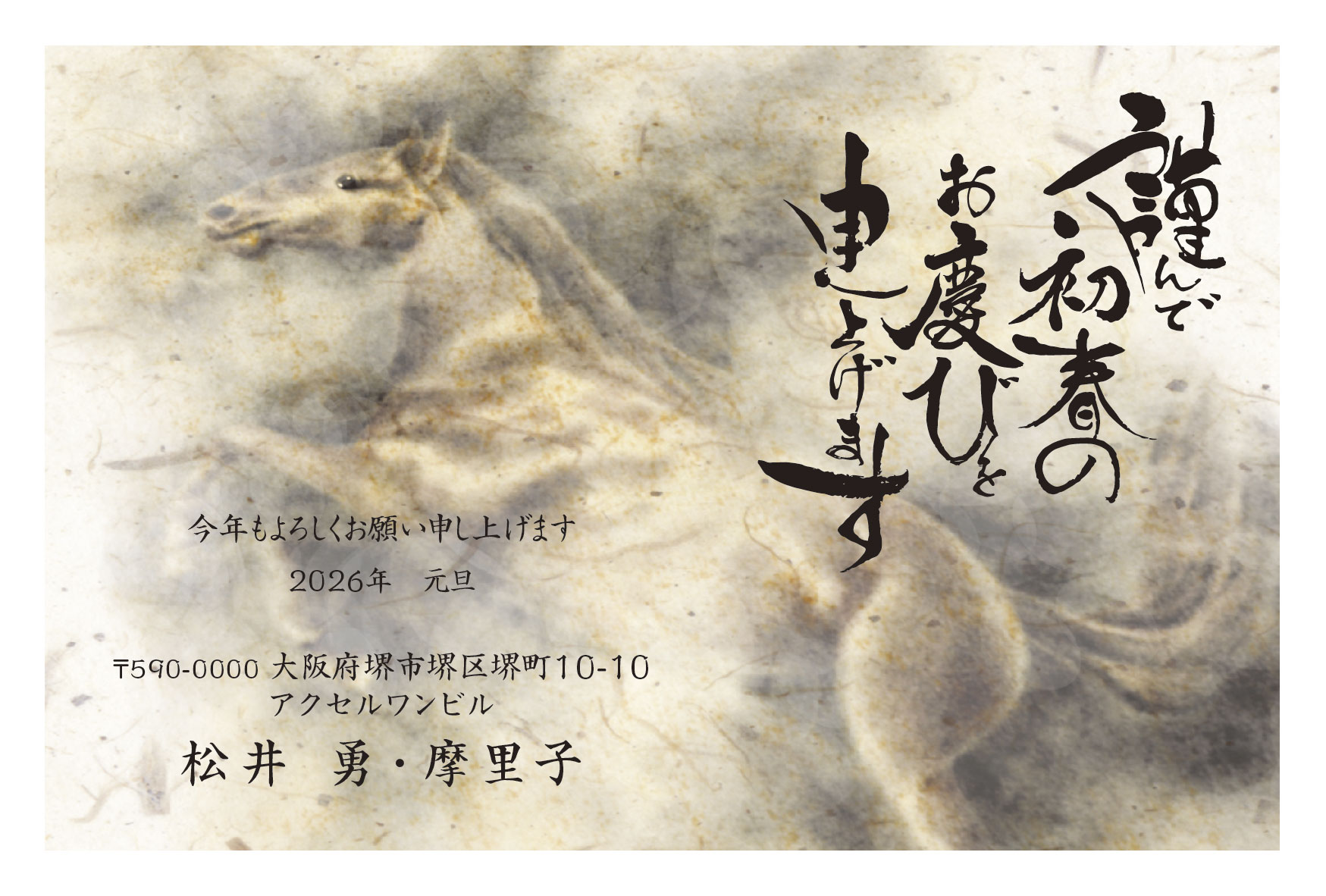 年賀状デザインをお選びください。デザイン番号を選んで、ご注文にお進みください。文章は自由にご記入いただけます。
