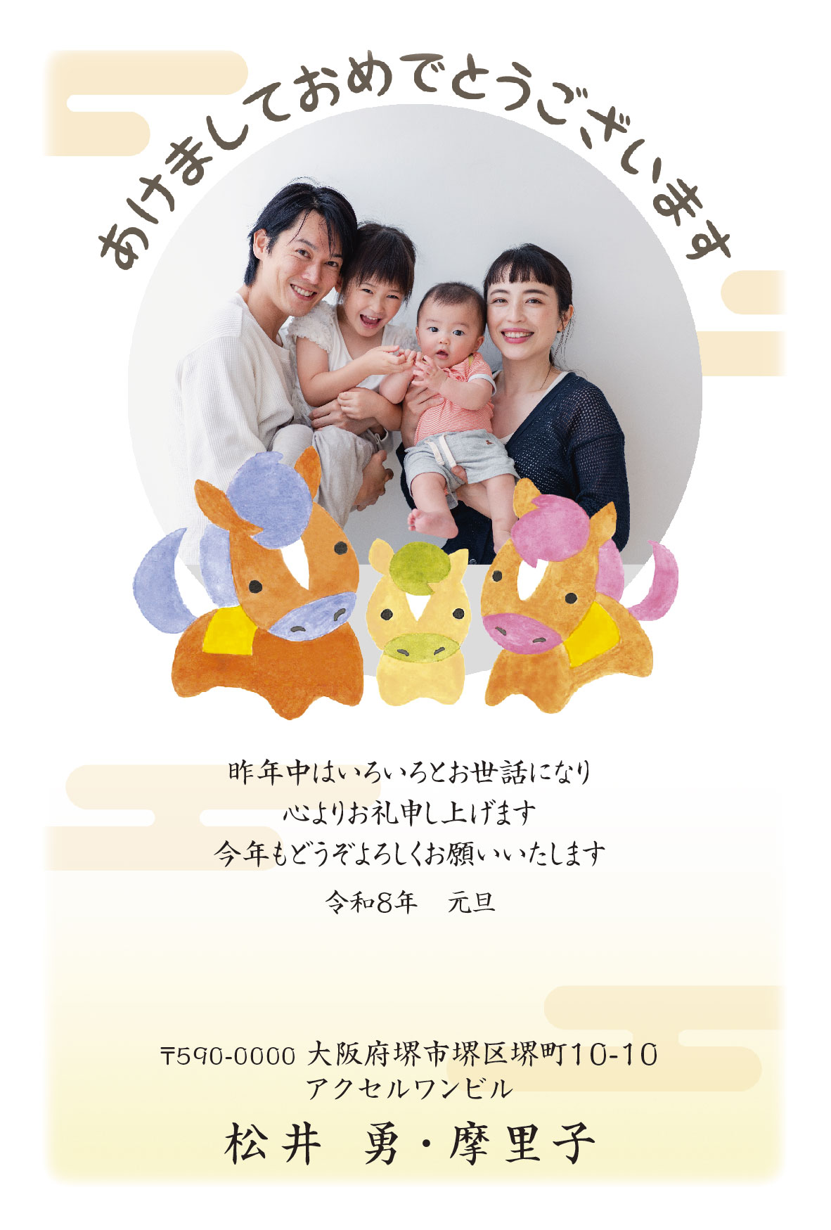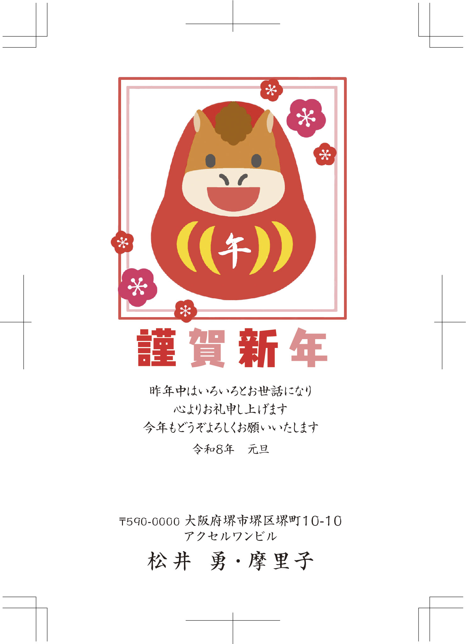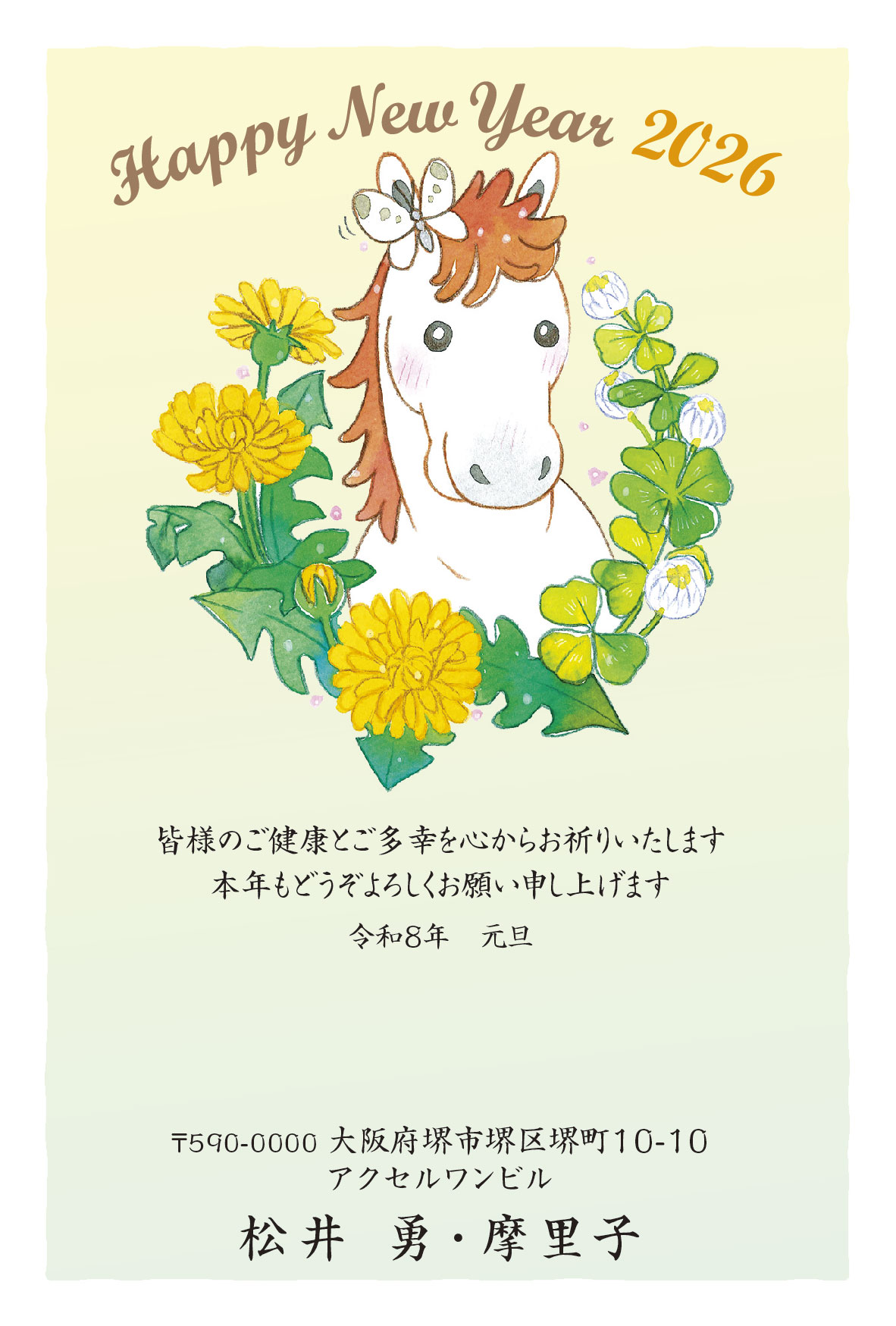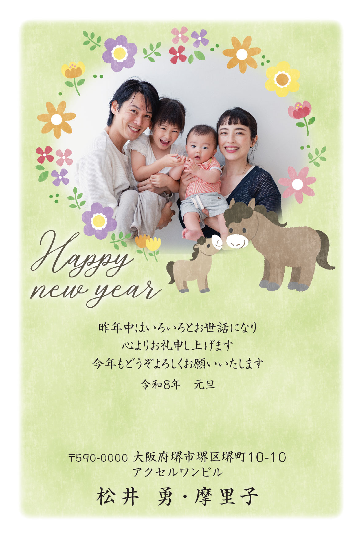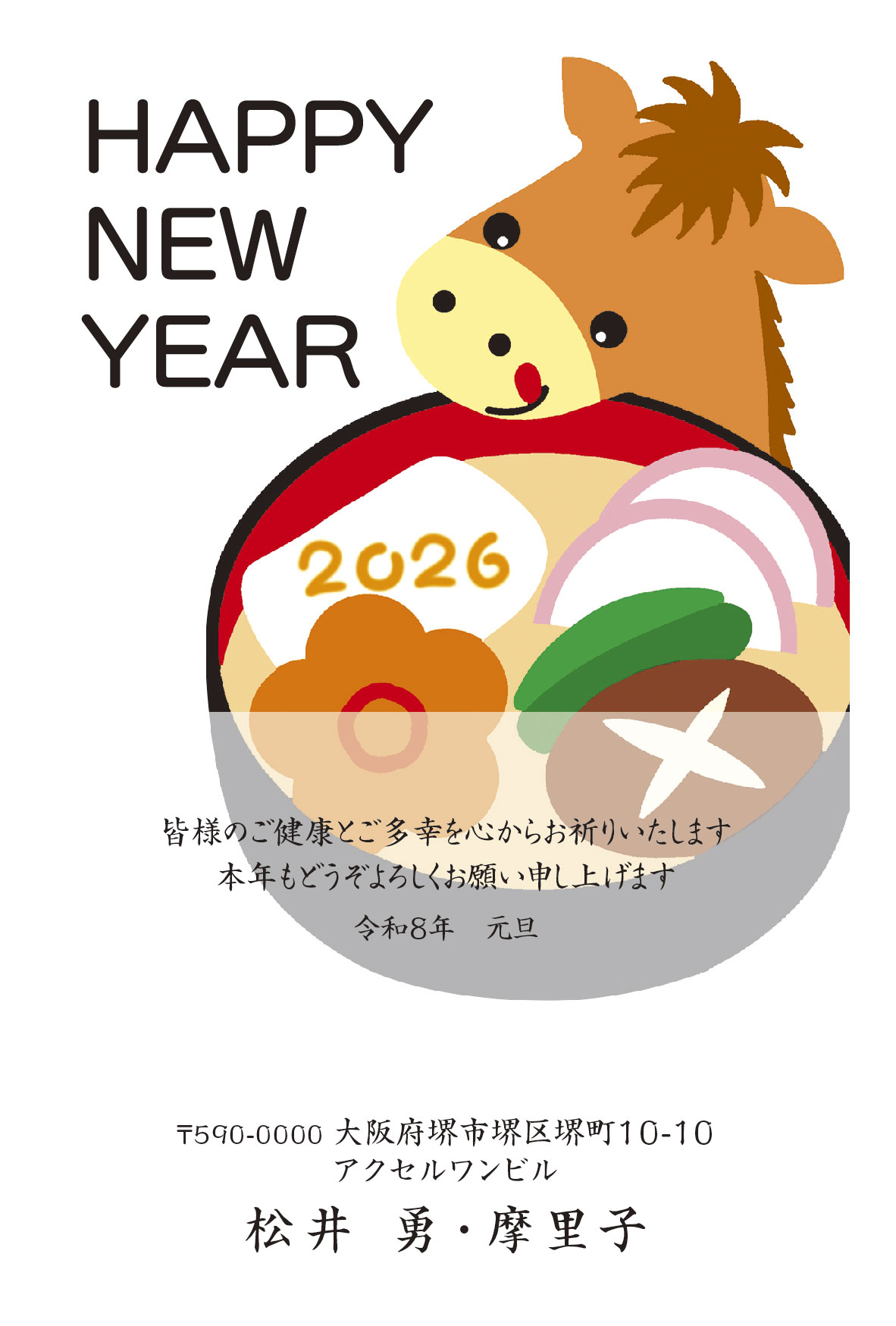 年賀状デザインをお選びください。デザイン番号を選んで、ご注文にお進みください。文章は自由にご記入いただけます。